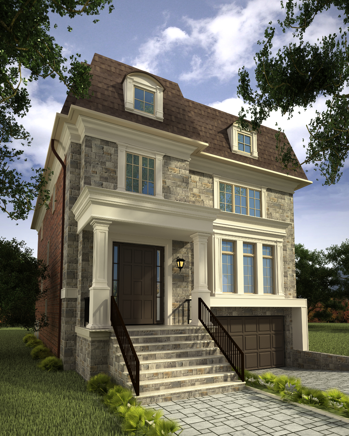 • Genuine clay brick, manufactured stone, decorative mouldings and accent features