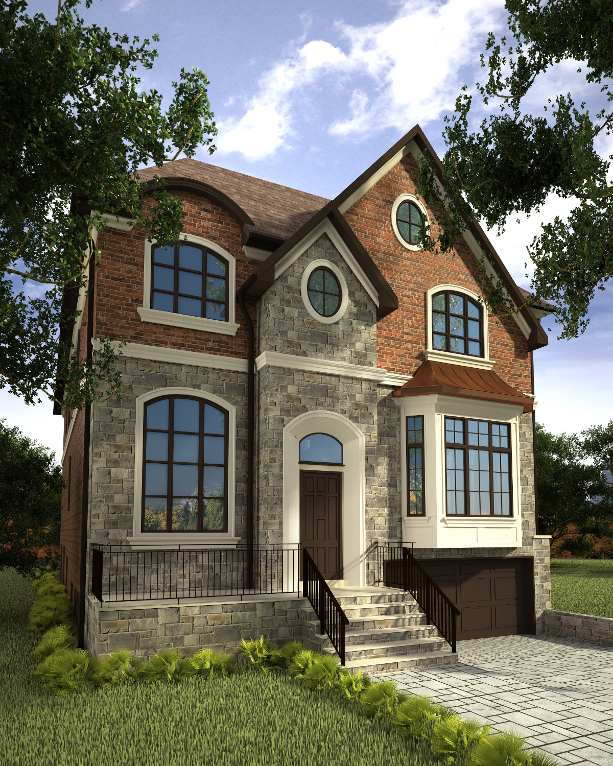 • Genuine clay brick, manufactured stone, decorative mouldings and accent features